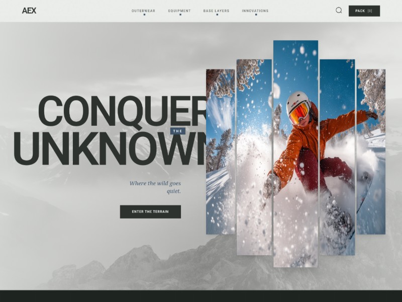 Ideal for outdoor, alpine, and performance brands that want a bold, engineered-feel e-commerce landing page to launch new collections or flagship product lines.
