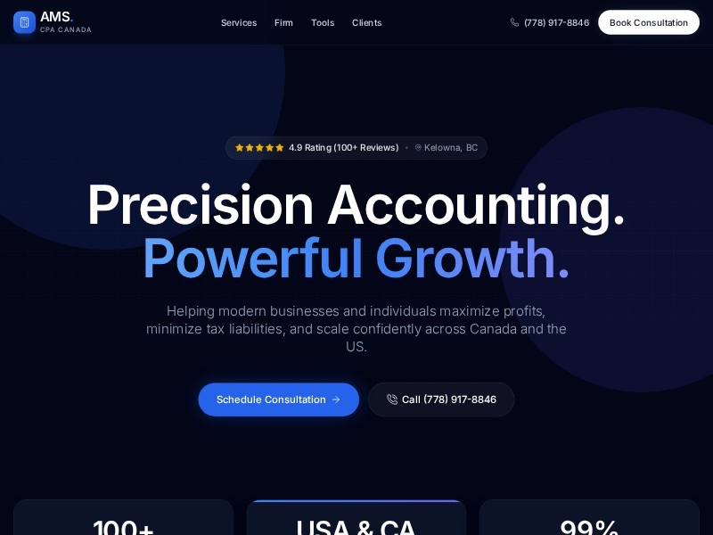 A premium landing page template for CPA firms and accounting services to showcase tax expertise, advisory offerings, trust signals, and consultation booking.