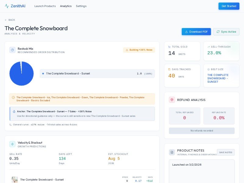 A reusable analytics dashboard template for inventory, sales velocity, and restock planning, designed for modern ecommerce and product operations teams.
