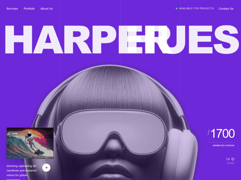 A bold and sophisticated Landing Page Template meticulously crafted for creative agencies specializing in motion design and 2D animation. Featuring a striking purple and black high-contrast color palette, this template balances artistic flair with conversion-focused sections.