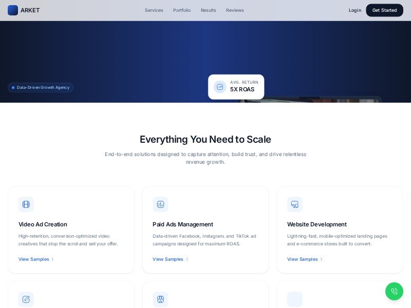 A high-converting ARKET agency landing page template for data-driven ad services, web design, and funnels, ready to customize for your marketing needs.