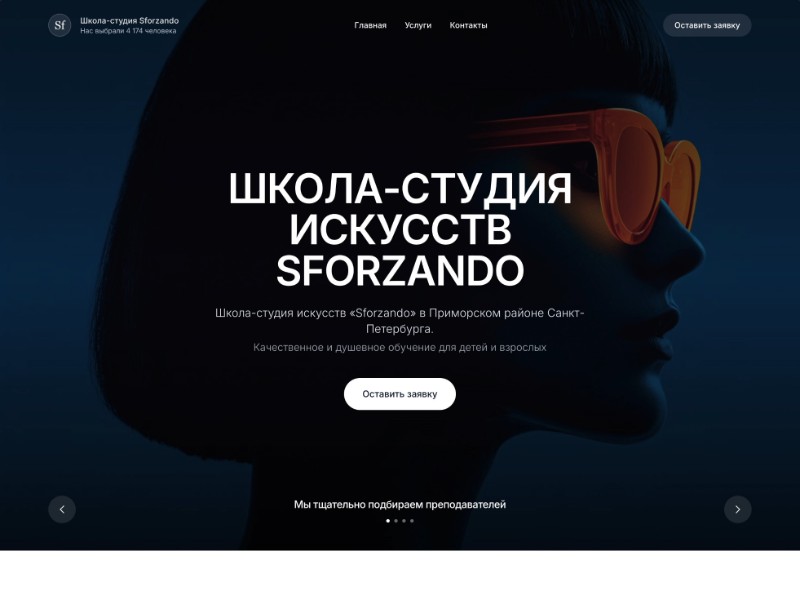 Sforzando Art School Landing Page Template is a modern, Russian-language layout for promoting art, music, and theater classes.