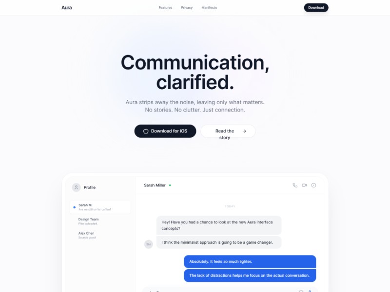 Ideal for founders, product teams, and designers who need a polished, minimal landing page to market a new messaging, chat, or communication platform across iOS and desktop.