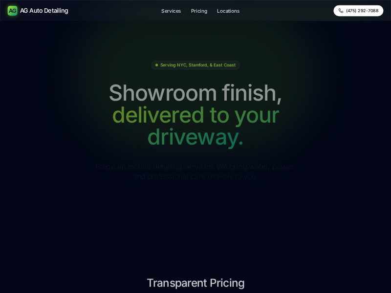 AG Auto Detailing Landing Page Template is a premium, dark-themed one-page site for mobile car detailing services.