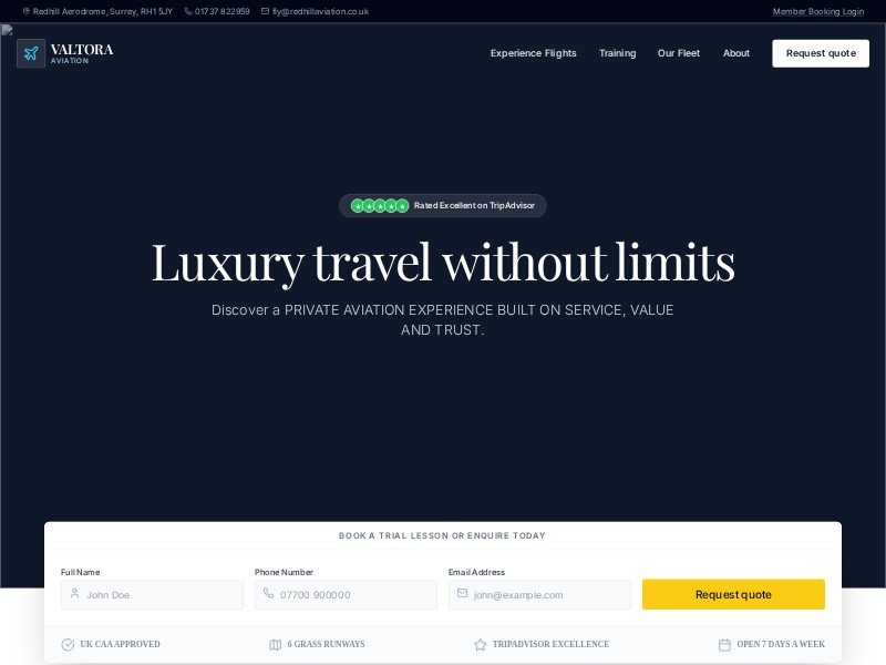 Ideal for marketing pilot training programs, experience flights, and aero club memberships with a premium, trust-building web presence.