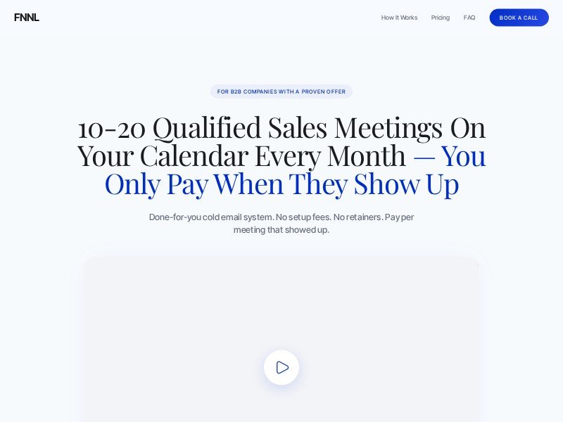 A reusable landing page template for performance-based B2B cold email agencies to showcase offers, explain process, and drive discovery calls.