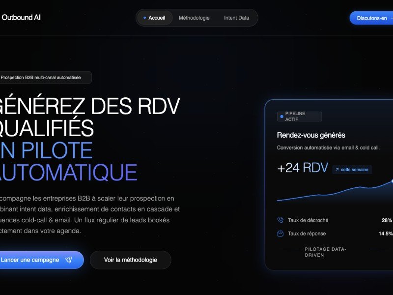 Primary use case: promoting a B2B lead generation, cold outreach, or sales development service with a modern, data-driven brand presence.
