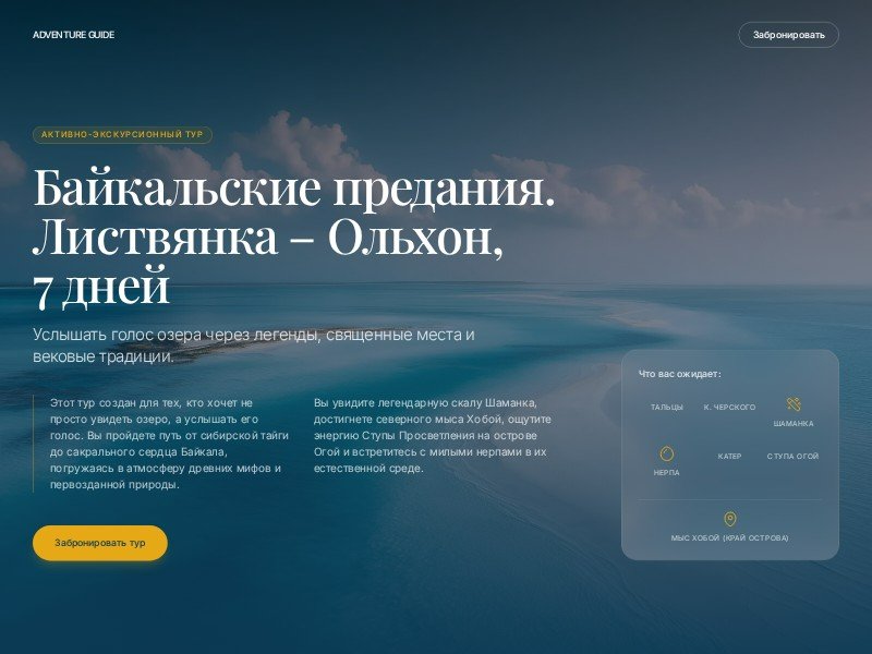 This premium landing page template is optimized for adventure tour operators and travel agencies. It features a sophisticated, high-contrast design using a deep blue and gold palette that emphasizes professional storytelling and clear conversion paths.