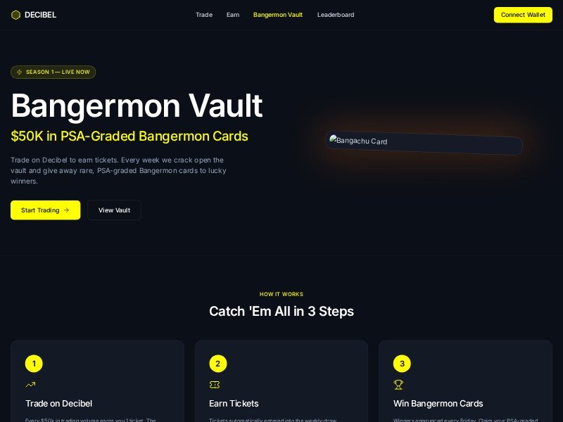 A reusable landing page template for crypto trading campaigns that gamify engagement with ticket rewards, prize vaults, winner tracking, and wallet-based claims.