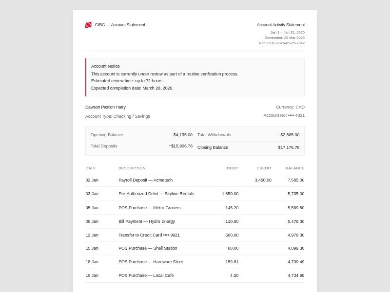 A polished, print-ready template for banks, fintech products, or internal finance teams that need to present account activity in a clear, trustworthy format.