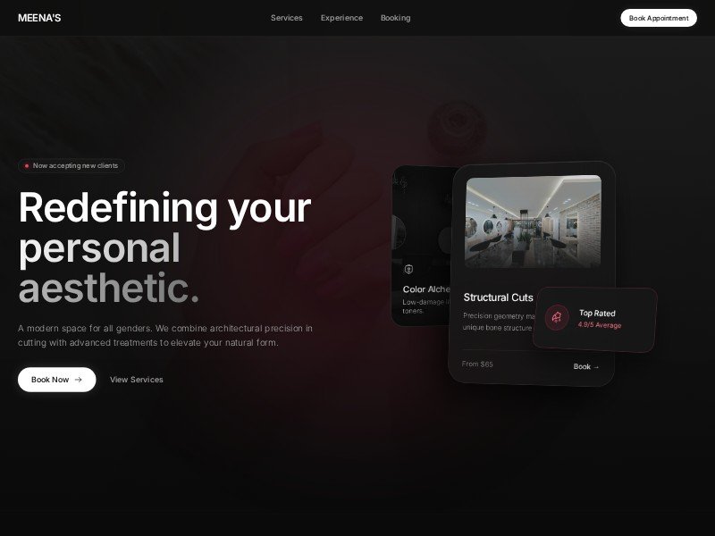 A polished dark-mode template designed for beauty salons and unisex studios that want to present services elegantly and convert visitors into booked clients.