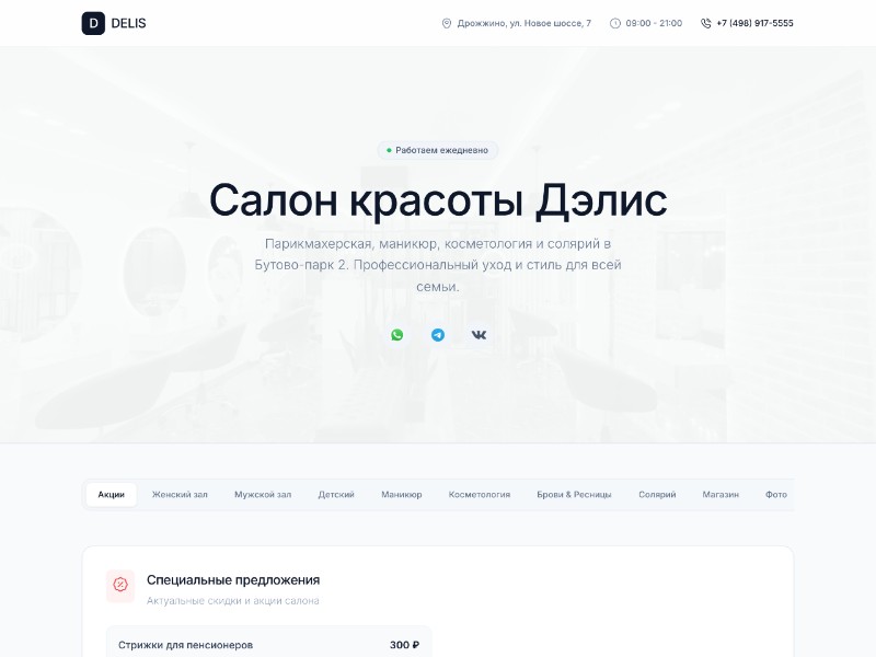 - Tabbed price lists for women’s, men’s, kids’ halls, manicure, pedicure, cosmetology, massage, depilation