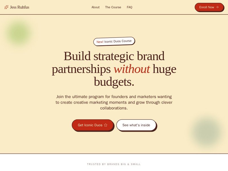 A reusable landing page template for promoting online courses that help founders and marketers learn brand partnership and collaboration strategies.