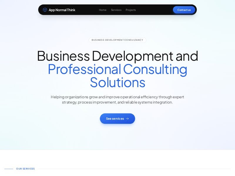 A reusable landing page template for business development consultancies to showcase services, projects, and lead-generation contact forms.