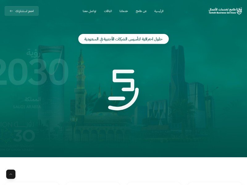 This is a premium, RTL-supported landing page template specifically tailored for business service providers, legal consultants, and corporate facilitators. It features a sophisticated dark-green color palette inspired by Saudi heritage and professional trust.