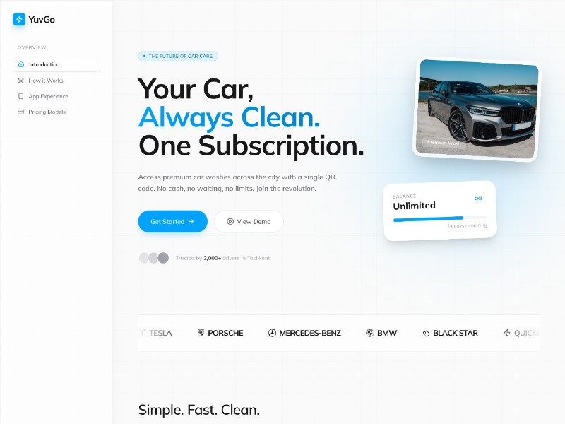 YuvGo Car Wash Subscription Landing Page Template delivers a sleek, conversion-focused layout for modern auto-care and subscription apps.