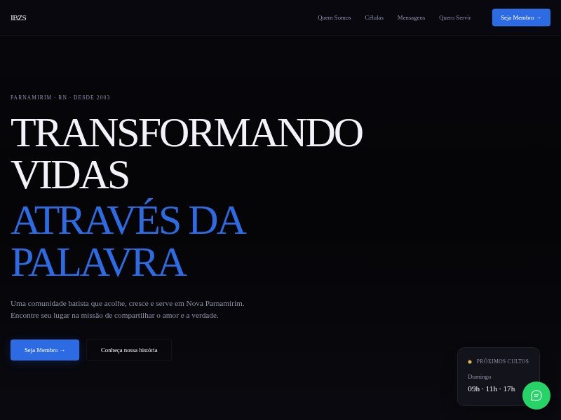 A sophisticated and high-impact dark-themed template tailored specifically for religious institutions like the Igreja Batista Zona Sul. This template provides a complete digital presence for spiritual communities looking to grow their reach and engage their congregation.