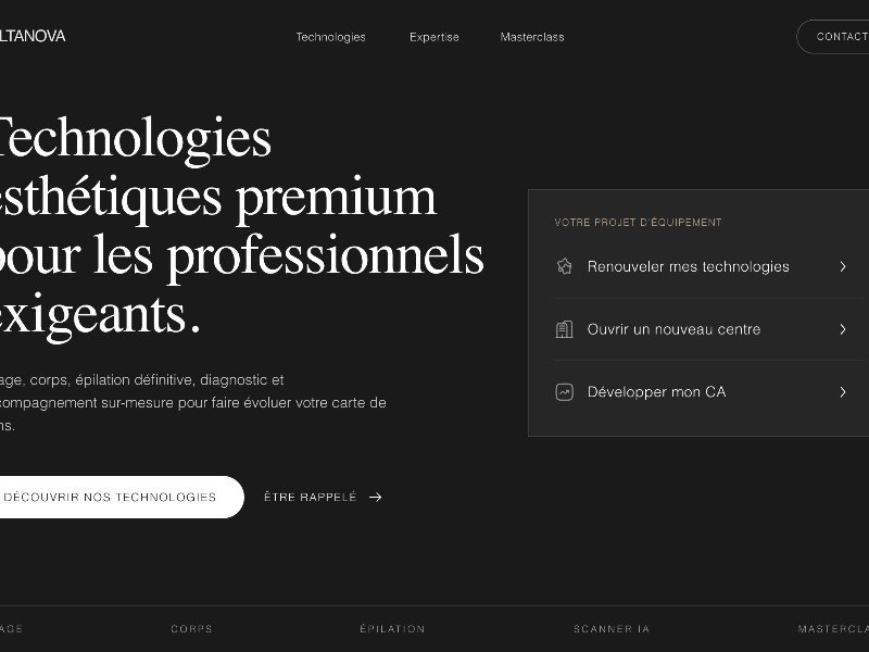 A premium landing page template for aesthetic technology brands, clinics, and beauty equipment providers to showcase treatments, training, and lead generation.