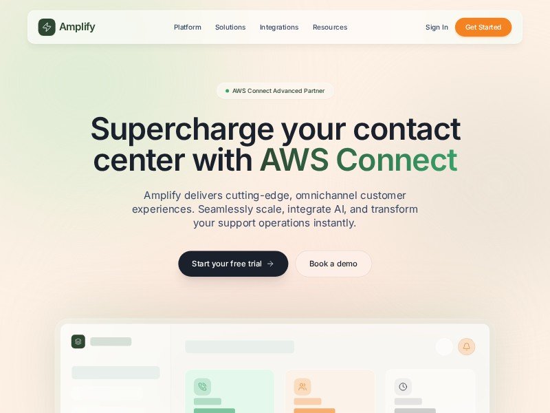 A reusable landing page template for AWS Connect and cloud contact center platforms, built to showcase features, integrations, analytics, and demo-driven conversion.