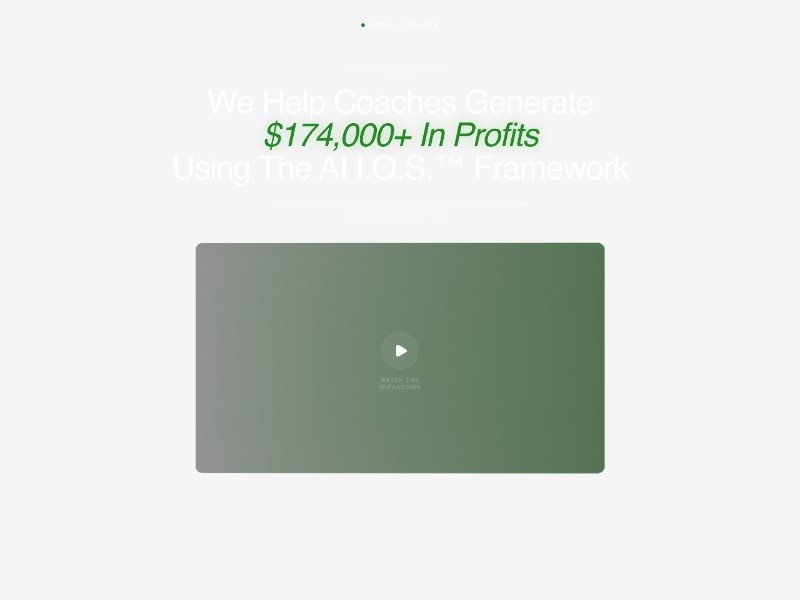 A high-converting landing page template for coaches and info-businesses to showcase client results, embed VSLs, and book strategy calls using the AI I.O.S.™ style framework.
