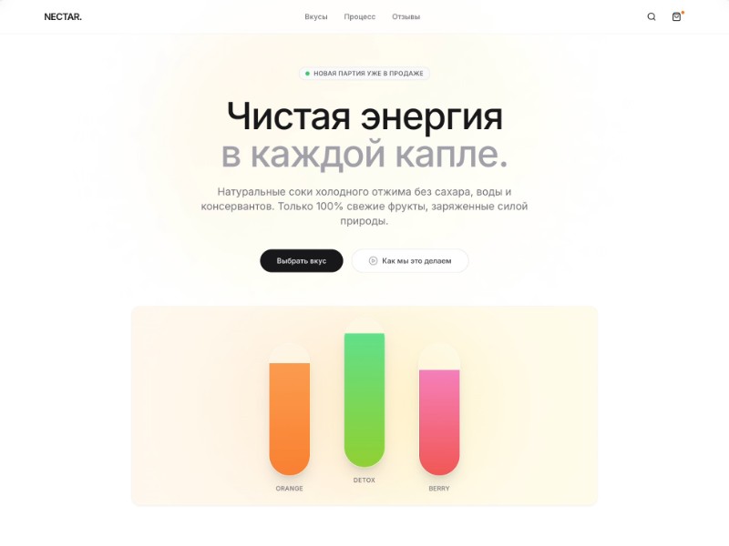 Nectar. is a cold-pressed juice landing page template designed for modern food and beverage brands.