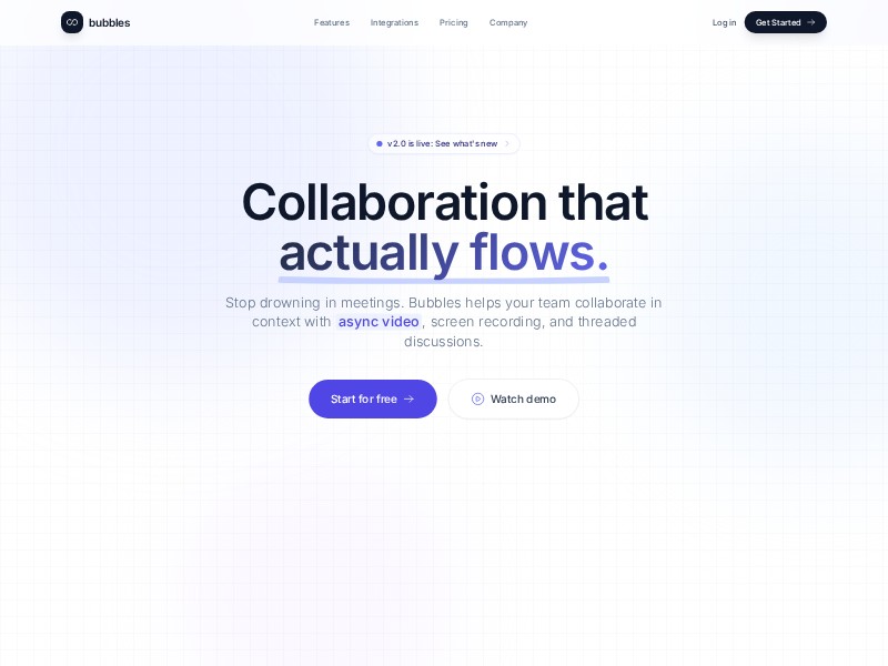 A reusable landing page template for Bubbles-style contextual collaboration SaaS, featuring async video, workflows, testimonials, and conversion-focused CTAs.