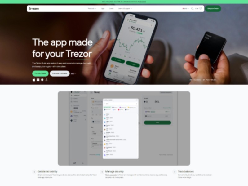 Trezor Suite is the official app to securely manage your crypto. Connect your Trezor hardware wallet to track assets, send and receive crypto, and protect your digital portfolio.