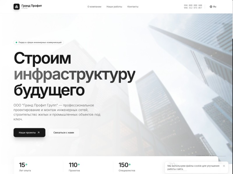 A sleek, Russian-language–ready template tailored for construction and engineering firms to present services, expertise, and completed projects.