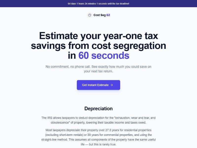 Primary Use Case: Ideal for tax professionals, cost segregation firms, or real estate advisors needing a ready-made landing page template to educate investors and drive estimate or consultation requests.