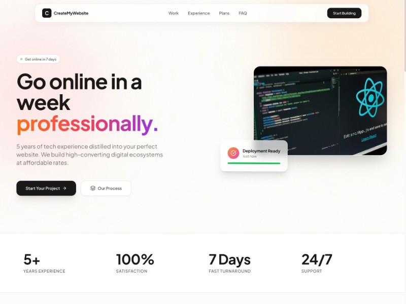 A polished CreateMyWebsite agency landing page template for web design and development services, ready to customize for fast, professional client-ready launches.