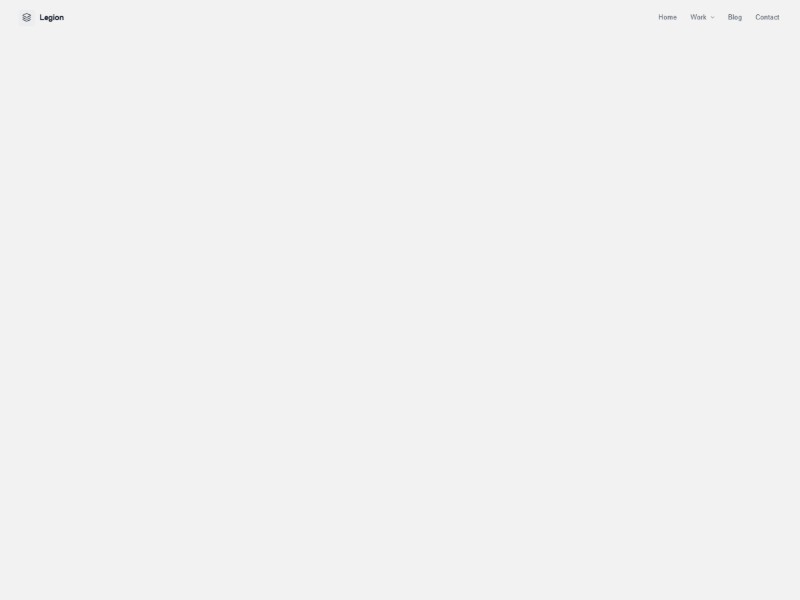 Legion is a bold creative agency landing page template featuring immersive imagery, layered card animations, and a minimalist layout ideal for design-forward brands.