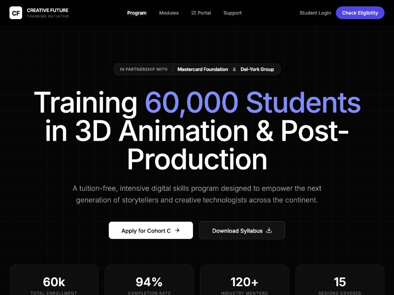 Perfect for online academies, creative bootcamps, and NGOs launching digital skills initiatives who need a ready-made template to present their program, curriculum, learner portal, and application process in one cohesive experience.