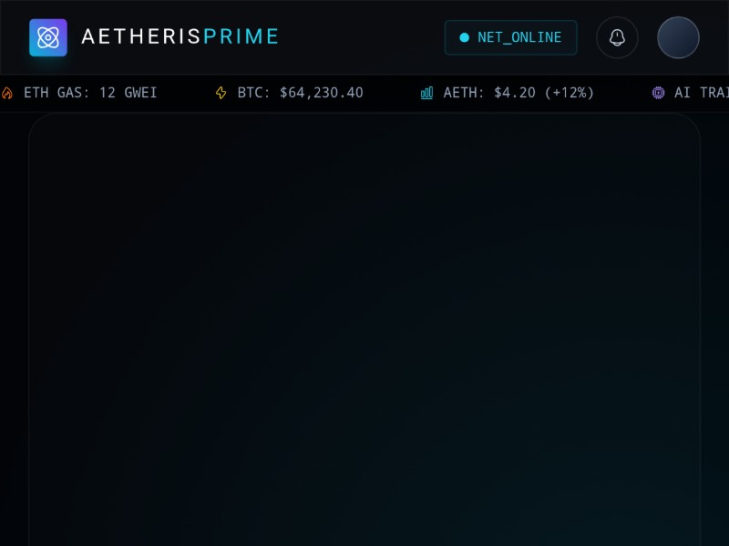 Aetheris Prime is a dark, futuristic DeFi dApp and marketing template combining trading, governance, and developer views in one cohesive experience.