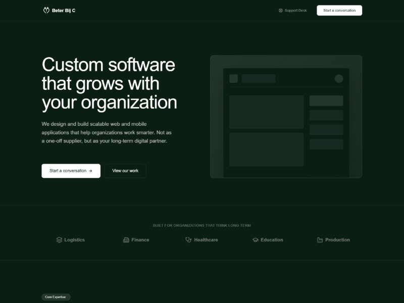 A reusable landing page template for custom software agencies to showcase web and mobile app development, integrations, branding, and IT services.