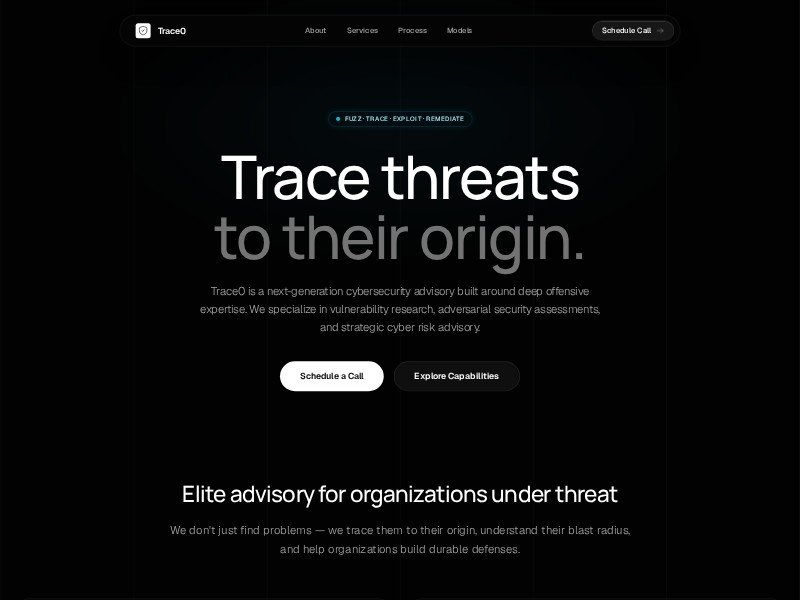 Primary use case: promoting a cybersecurity advisory, offensive security practice, or enterprise risk consultancy with a modern, authoritative web presence.