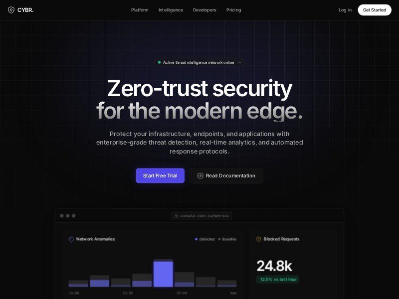 A high-performance zero-trust security landing page template designed for enterprise-grade threat detection and automated response platforms.