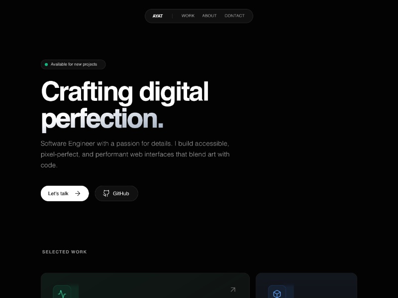 A sleek, dark, gradient-driven portfolio template designed for software engineers who want to showcase their work with polish and clarity.