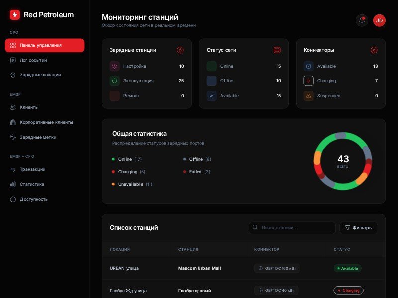 Red Petroleum EV Dashboard UI Template is a dark, data-rich interface for managing EV charging networks with clarity and control.