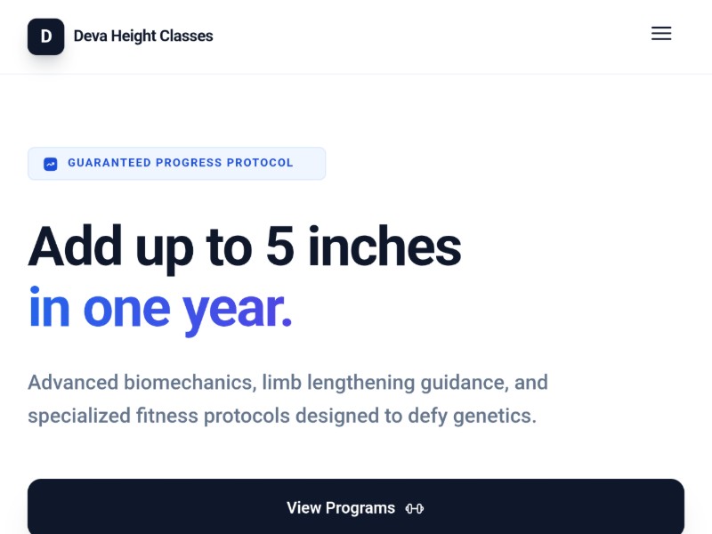 Primary use case: launching or validating a height-increase or specialty fitness coaching brand with a polished, persuasive single-page marketing site.