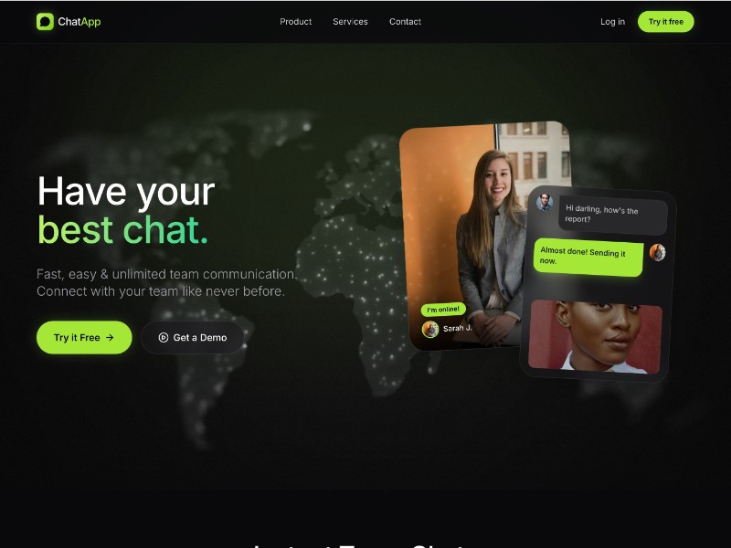 A high-converting, dark-mode landing page template tailored for team chat and communication SaaS products.