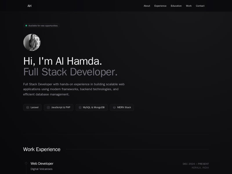 A reusable dark portfolio template for full stack developers to showcase experience, skills, projects, education, and contact details with a polished personal brand.