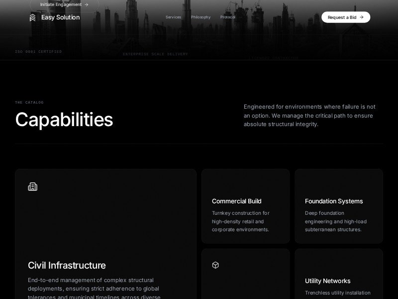 A reusable landing page template for premium contracting, civil infrastructure, and engineering firms to showcase services and capture project inquiries.