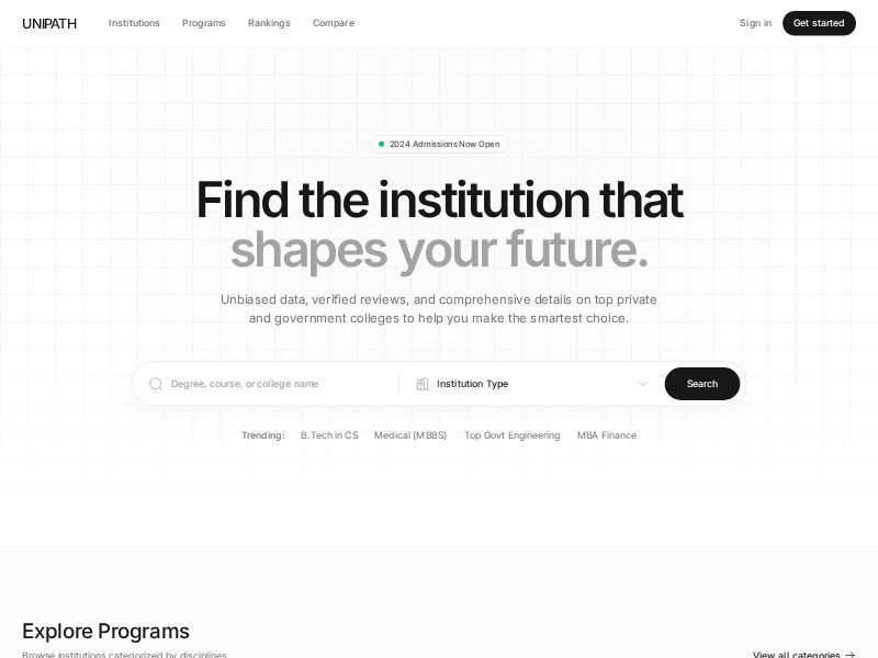 Built for college search platforms, admissions startups, and education services that want a clean, credible, student-friendly experience. It combines strong information hierarchy, modern visuals, and conversion-focused sections to help users discover the right college faster.