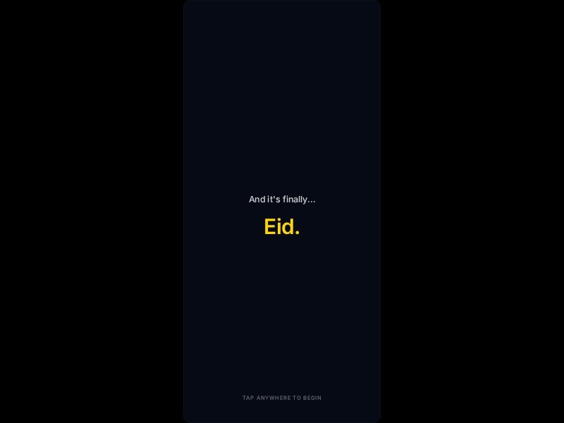 A charming mobile-first Eid celebration template designed for sending warm wishes through playful, animated steps and a memorable final message.