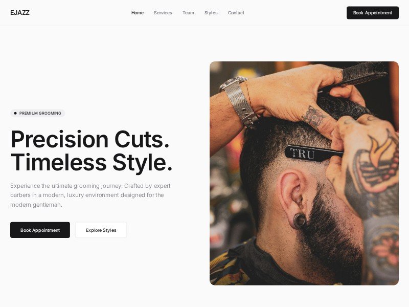 A refined landing page template for barbershops and grooming studios to showcase services, team, style galleries, and appointment booking.