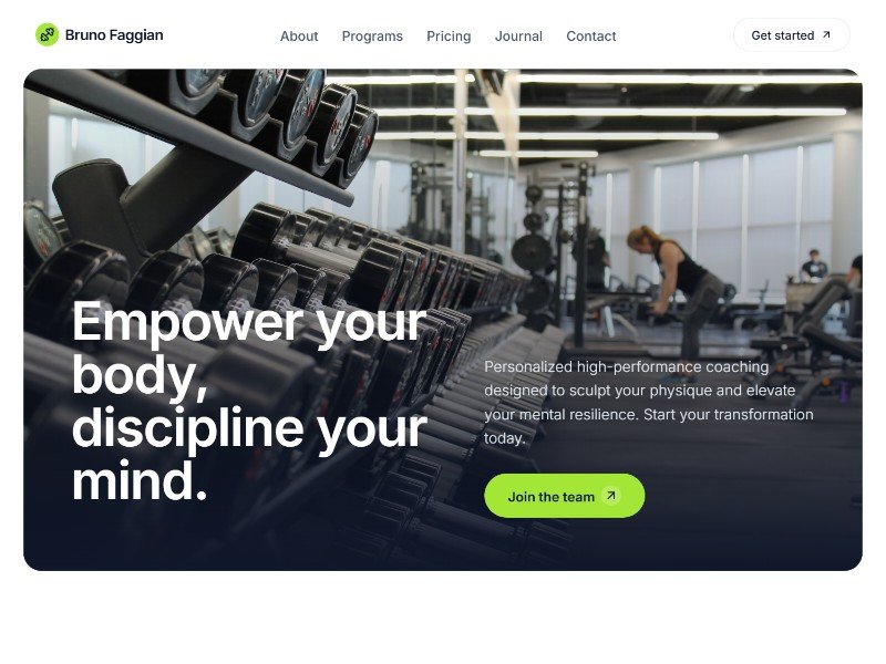 Bruno Faggian Coaching is a fitness coach landing page template designed to help trainers launch a premium online presence fast.