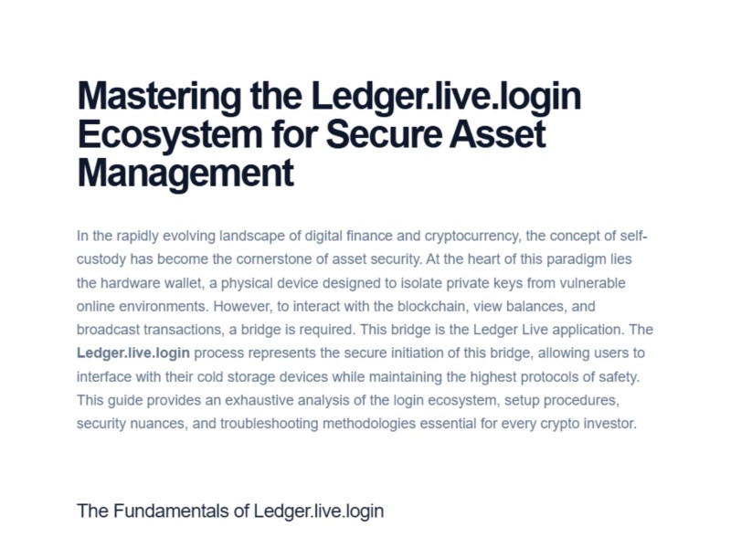 Primary Use Case: Use this template to create branded, trustworthy documentation pages that walk users through secure Ledger.live.login procedures and broader crypto asset management practices.