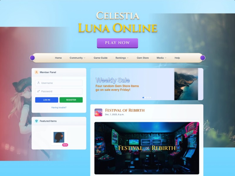 A colorful, fantasy-themed MMORPG landing page template inspired by Celestia Luna, ideal for promoting online games and private servers.