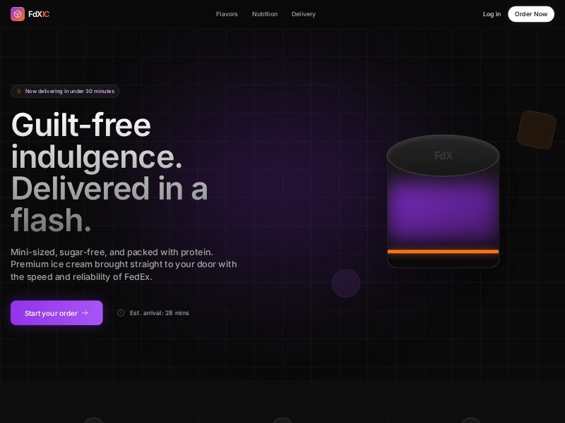 Perfect for D2C food startups, health supplements, or any rapid-delivery service wanting a premium, tech-forward digital presence that communicates reliability and quality.