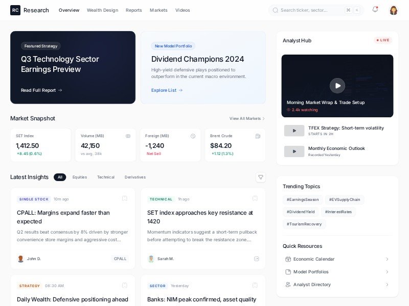 A clean, high-performance dashboard template for financial analysts and investment research teams to track market insights and reports.